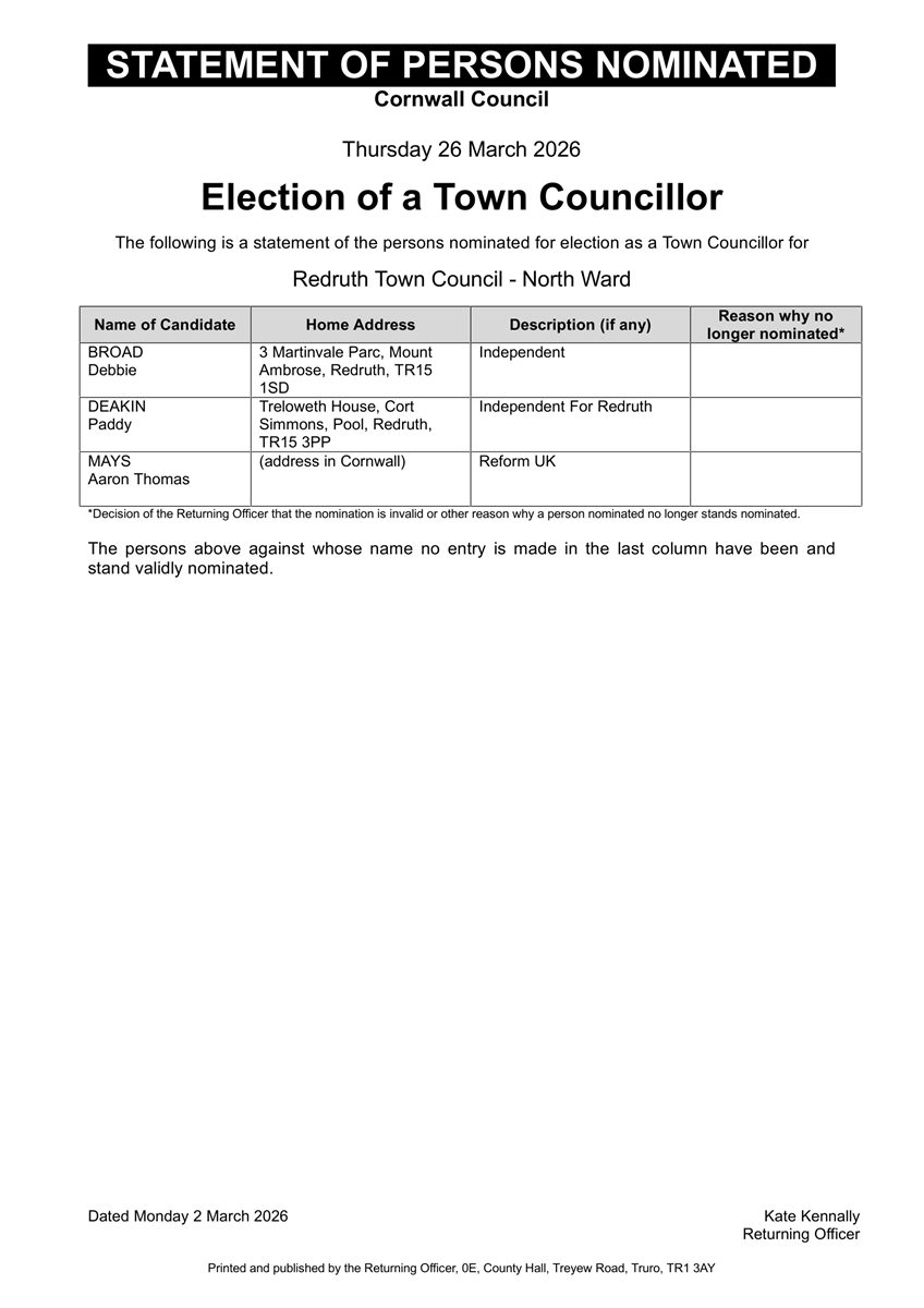 To apply, email hr@redruth-tc.gov.uk with your CV and a covering letter.