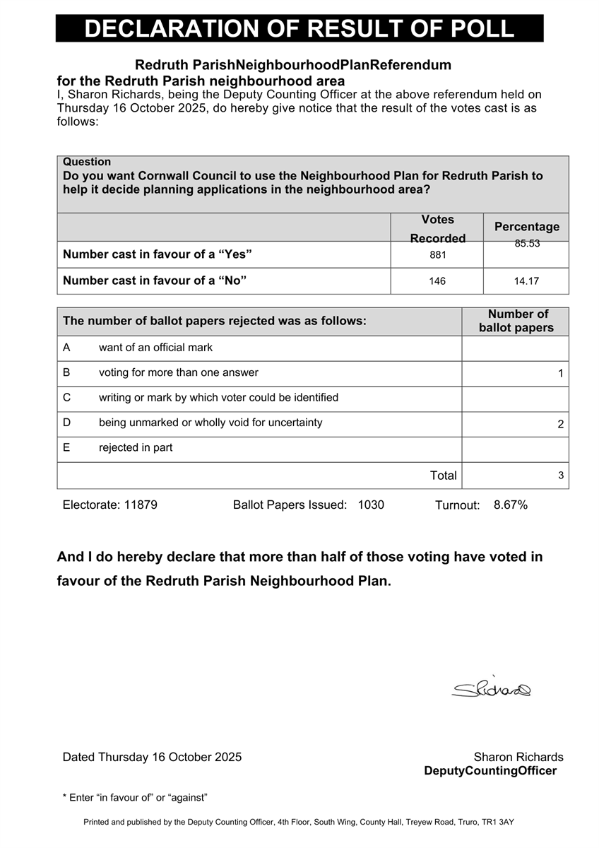 Cheryl Welsh, Strategic Projects Officer – projects@redruth-tc.gov.uk